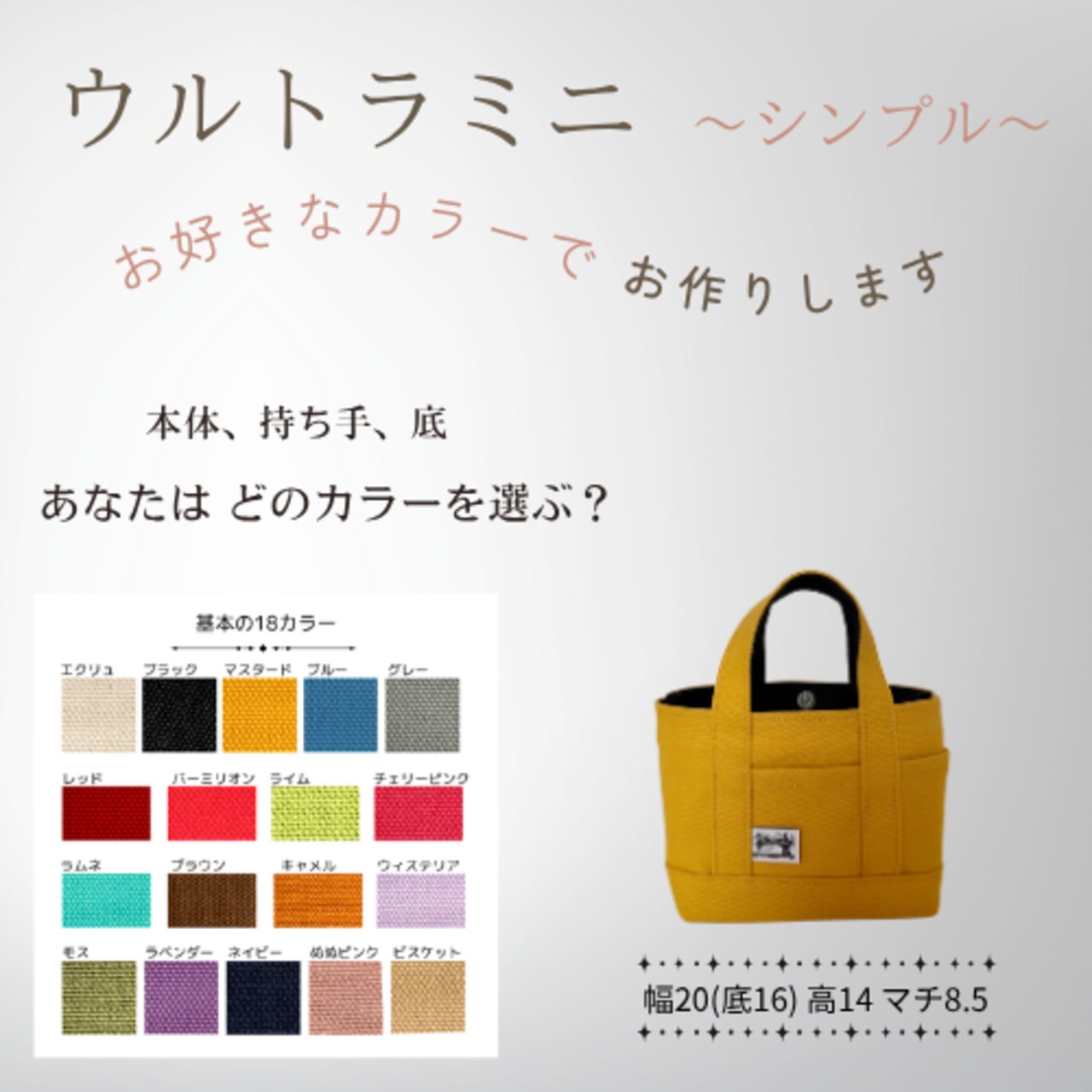 幅20cm(底部分16)H14 マチ8.5